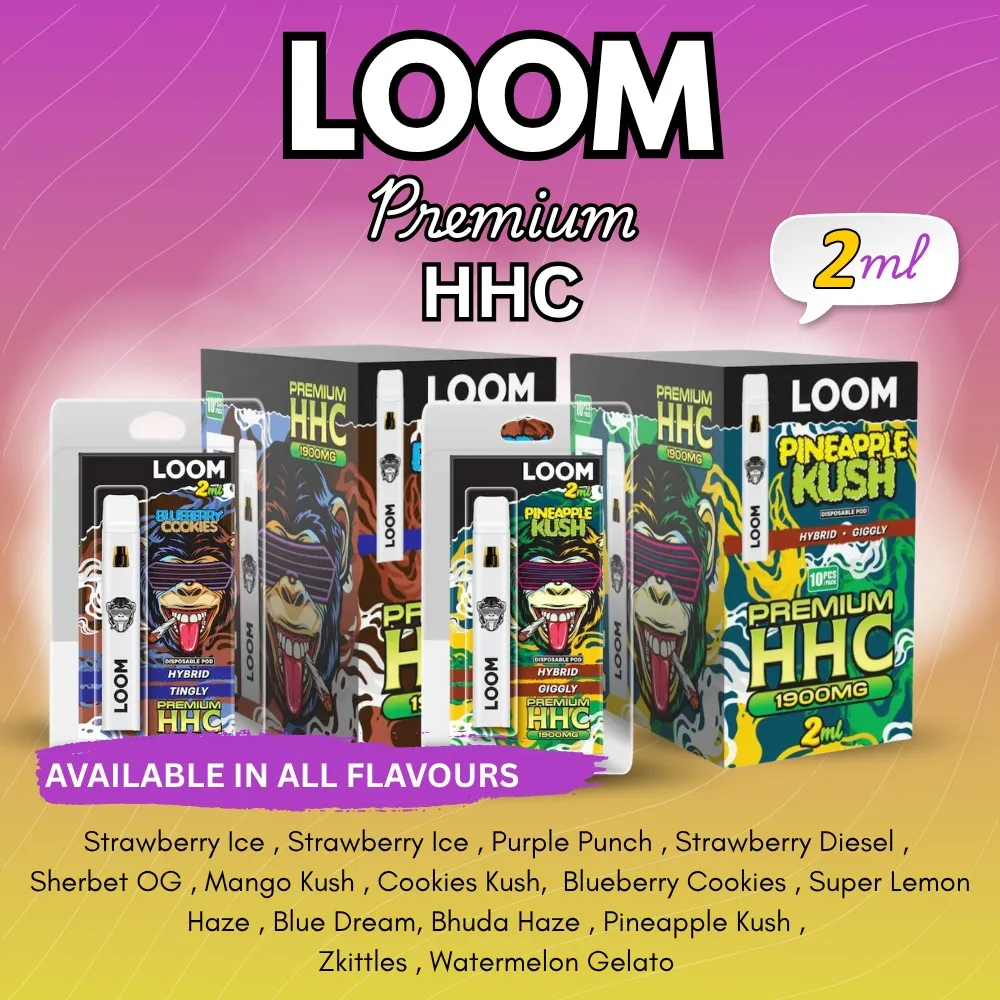 HHC is a brand new hemp-derived compound, with effects similar to Delta-9 and LOOM Vapes are extremely popular due to great terpene flavours, users report a nice clear high.